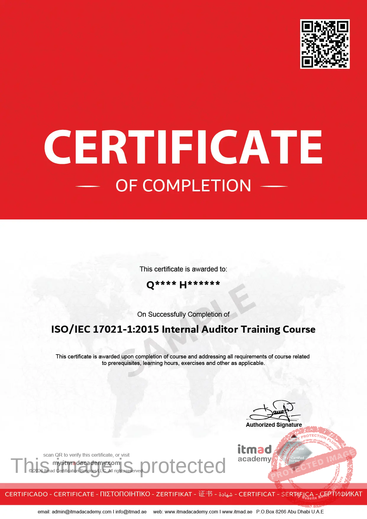 ISO 17021-1:2015 Conformity Assessment for Certification Bodies - Foundation Training Course Original price was: 220,00 د.إ.Current price is: 125,00 د.إ.