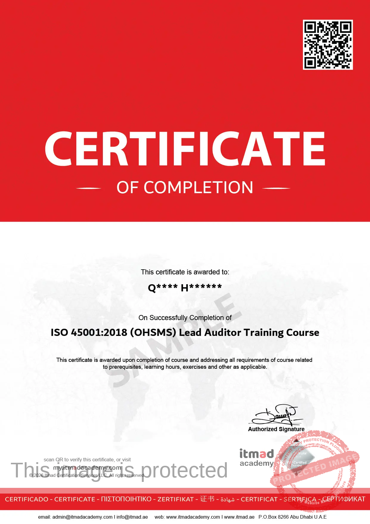 ISO 45001:2018 (OHSMS) Lead Auditor Training Course